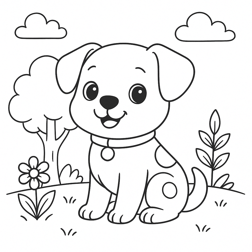 - Giới thiệu từ: Trước khi tô, chỉ vào hình và nói to, rõ ràng từ tiếng Anh: “Let’s color the puppy!” (Mình cùng tô chú chó con nào!). Lặp lại từ vài lần. Giải thích nghĩa tiếng Việt nếu cần.